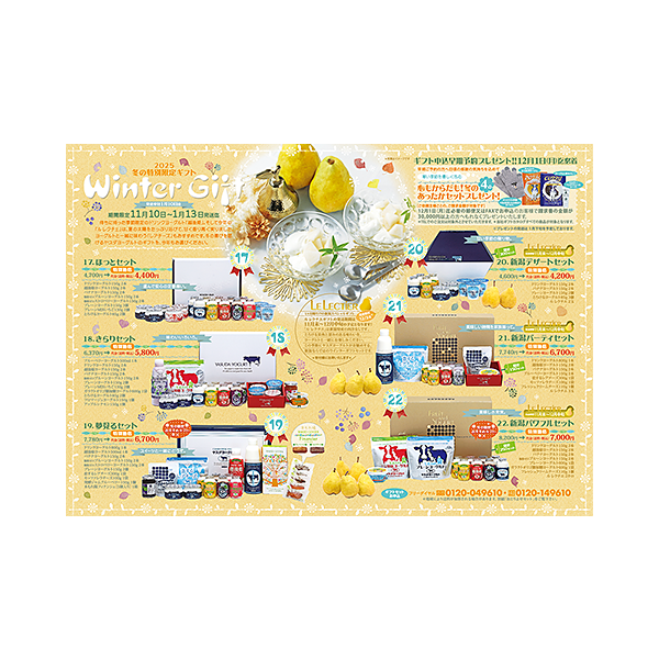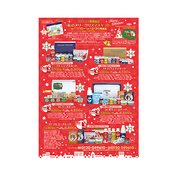 HOME > カタログダウンロード カタログダウンロード CATALOGUE DOWNLOAD クリスマス期間限定 私のメリークリスマスギフト 期間限定 2025年11月10日〜12月30日発送迄 [発送受付12月27日迄] ダウンロード 2025 冬の特別限定ギフト 「Winter Gift」 期間限定 2025年11月10日〜2026年1月13日発送迄 [発送受付1月10日迄] ダウンロード 2025年 冬・2026年 春 NO.39 「おとりよせセット」カタログ ダウンロード ヤスダヨーグルトのこだわり 製品案内 おいしいヨーグルト料理 ヤスダヨーグルトQ&A Y&Yガーデン ヤスダヨーグルトショップ ベーカリー レーチェ 工場見学 オンラインショップ カタログダウンロード