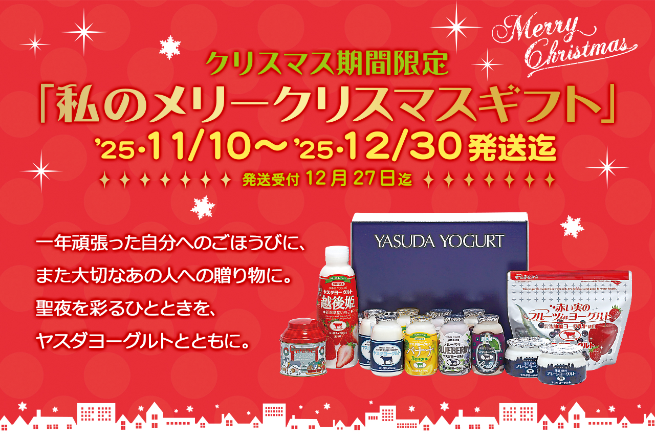 一年頑張った自分へのごほうびに、また大切なあの人への贈り物に。聖夜を彩るひとときを、ヤスダヨーグルトとともに。 -